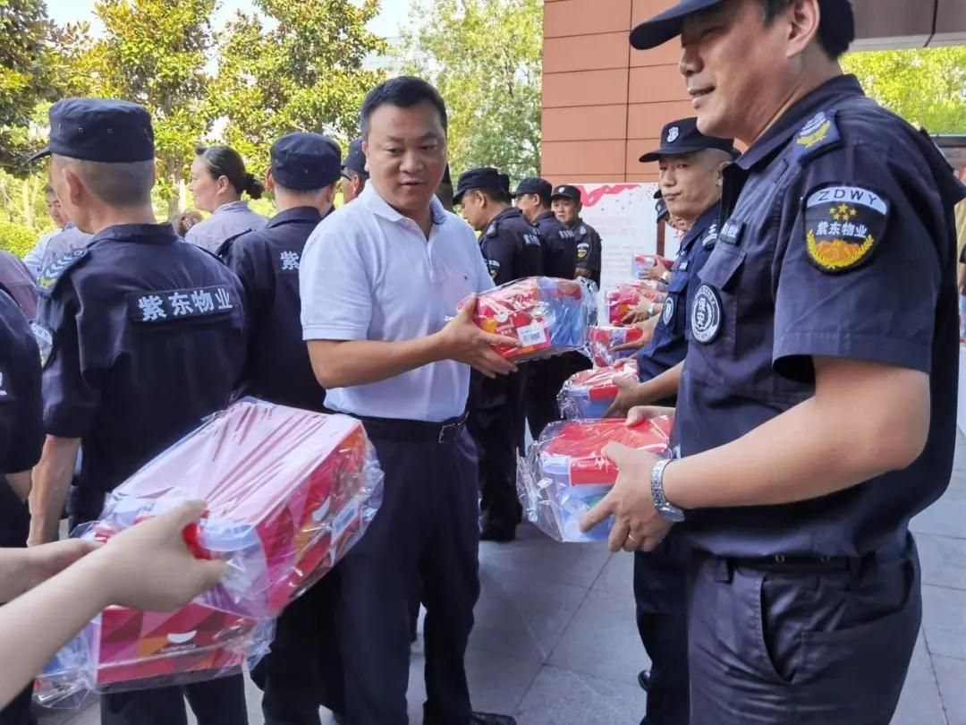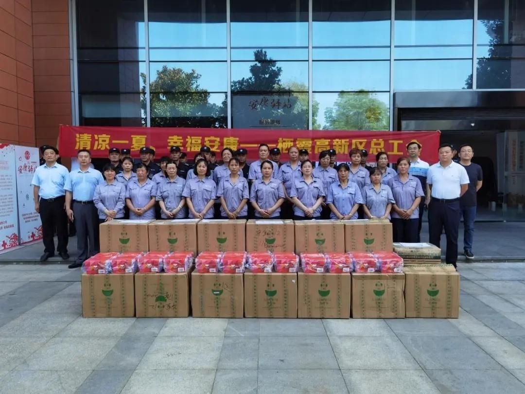 時(shí)值酷暑,高溫難耐。棲霞高新區(qū)開展“清涼一夏、幸福安康”活動(dòng),高新區(qū)領(lǐng)導(dǎo)班子看望慰問了高溫下堅(jiān)守崗位的保潔、保安、樓棟長(zhǎng)等一線工作人員,為他們送去了防暑降溫物品,感謝他們?cè)谘籽紫娜諡榫S護(hù)園區(qū)秩序,保障環(huán)境衛(wèi)生做出的貢獻(xiàn)。并叮囑一線職工們重視安全防護(hù),注意防暑降溫。
