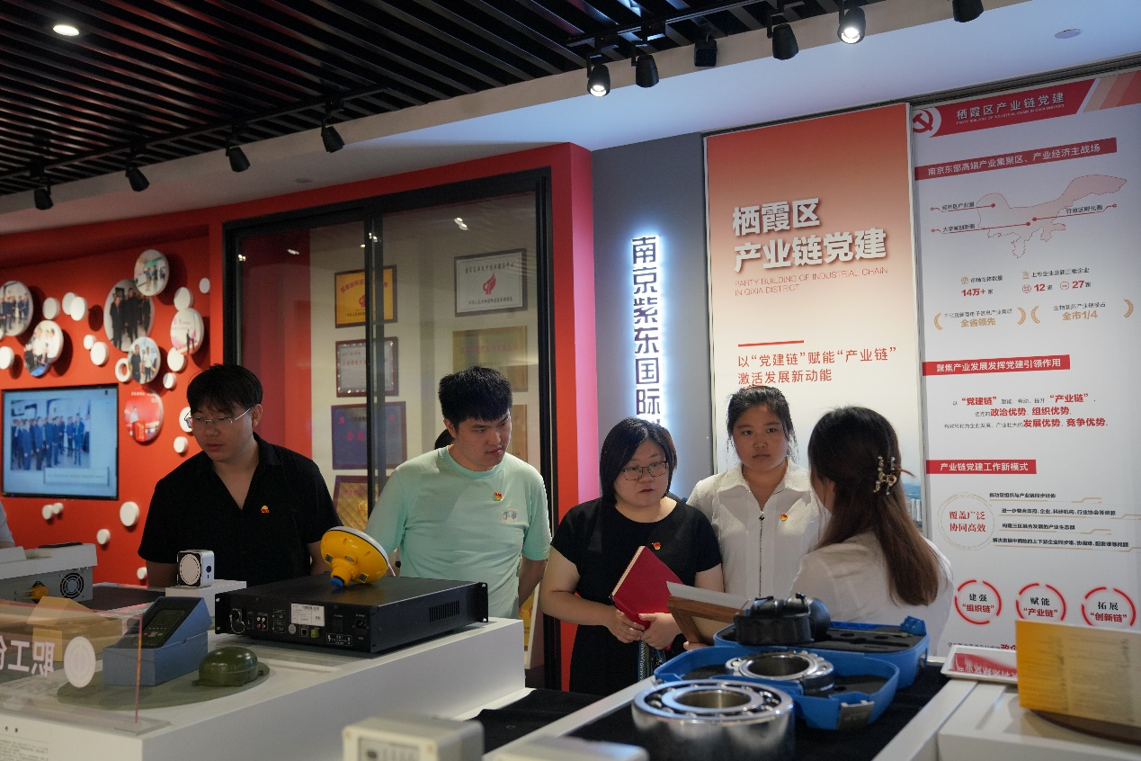 活動中還組織了公司黨員同志參觀棲霞高新區(qū)黨群人才服務(wù)中心。呼吸墻、感應(yīng)拍照、光感翻頁……科技感十足的沉浸式體驗,讓黨員們感受到不一樣的學(xué)習(xí)方式。通過參觀,黨員們切身感受到黨建引領(lǐng)科技創(chuàng)新在高新區(qū)內(nèi)的巨大發(fā)展變化和非凡成就,內(nèi)心充滿了無比的自豪,黨員們連連贊嘆“高新區(qū)的發(fā)展振奮人心、催人奮進”。