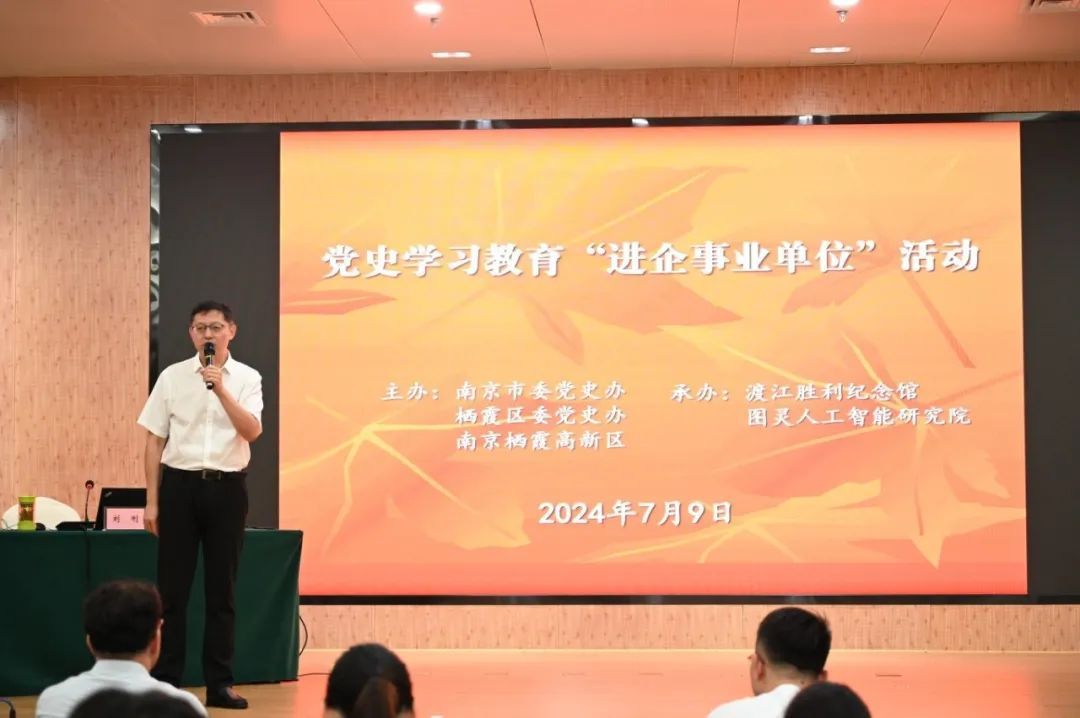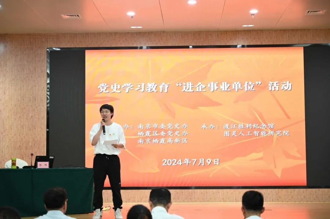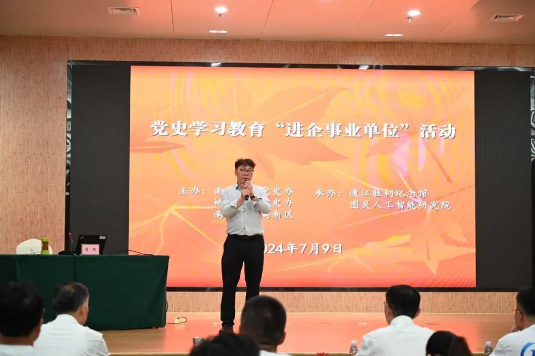 學(xué)史明理,學(xué)史增信,學(xué)史崇德,學(xué)史力行。為進一步推動黨史學(xué)習教育走深走實,強化新時代黨員的責任與擔當,7月9日,由南京市委黨史辦、棲霞區(qū)委黨史辦、棲霞高新區(qū)主辦,渡江勝利紀念館、圖靈人工智能研究院承辦的黨史學(xué)習教育“進企事業(yè)單位”活動在渡江勝利紀念館圓滿舉行?;顒佑墒形h史辦宣聯(lián)處處長、一級調(diào)研員徐國前主持。