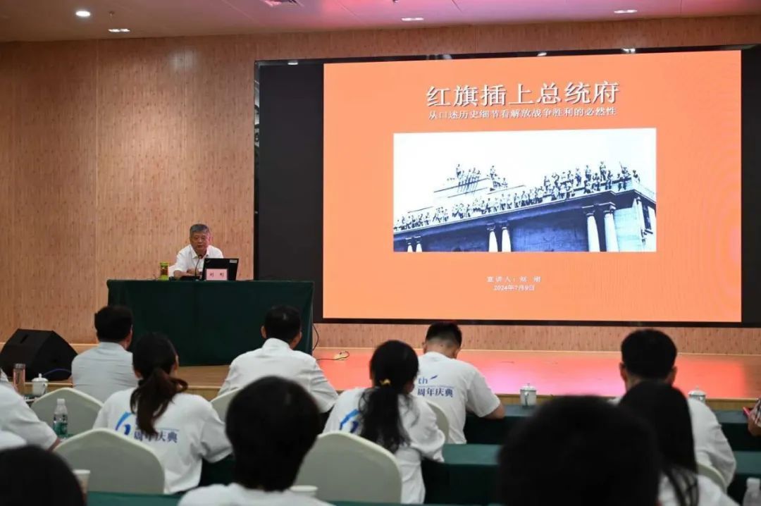 隨后,江蘇省政協(xié)辦公廳原一級調(diào)研員、南京中國近現(xiàn)代史遺址博物館原黨總支委員劉剛,為大家?guī)砹艘惶弥黝}為《紅旗插上總統(tǒng)府——從口述歷史細節(jié)看解放戰(zhàn)爭勝利的必然性》的精彩授課。課程內(nèi)容深入淺出,生動再現(xiàn)了解放戰(zhàn)爭的光輝歷程,讓大家深刻理解了中國共產(chǎn)黨領(lǐng)導(dǎo)下的解放戰(zhàn)爭勝利的歷史必然性。