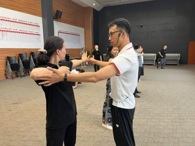 活動(dòng)現(xiàn)場(chǎng),老師詳細(xì)介紹了八段錦的歷史和功效,結(jié)合功法口訣和呼吸要點(diǎn),深入講解了八段錦的一吐一納、一招一式,從手法、步法、身形三個(gè)方面將八段錦的動(dòng)作進(jìn)行拆解示范,對(duì)大家的動(dòng)作細(xì)節(jié)耐心指導(dǎo)。在老師的指導(dǎo)下,大家凝神靜氣,將八段錦“意動(dòng)行隨、動(dòng)靜相兼”的內(nèi)涵表現(xiàn)得淋漓盡致,詮釋了八段錦作為中國(guó)瑰寶的獨(dú)特魅力。