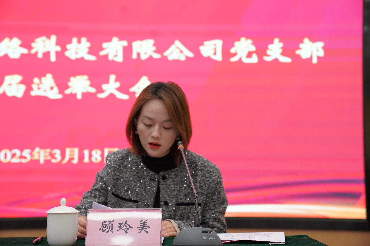 會(huì)議在莊嚴(yán)的國(guó)歌聲中拉開(kāi)帷幕。黨支部書(shū)記顧玲美同志主持會(huì)議并做工作報(bào)告,回顧總結(jié)上一屆黨支部在加強(qiáng)政治建設(shè)、提升黨員能力、助力黨業(yè)融合等方面的工作成果,分析了工作中存在的不足,并對(duì)下一屆黨支部工作提出建議。