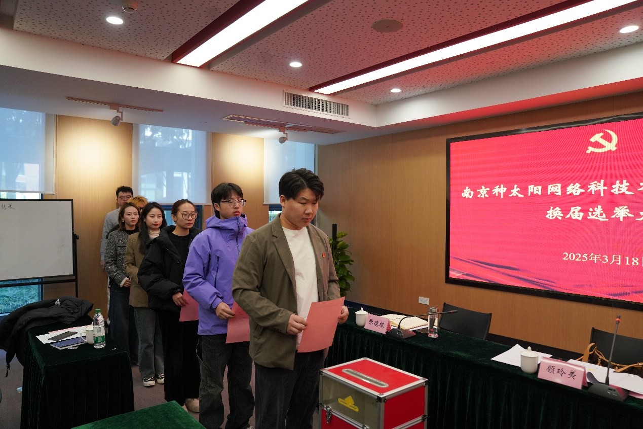 2025年3月18日,南京種太陽(yáng)網(wǎng)絡(luò)科技有限公司黨支部召開(kāi)換屆選舉大會(huì),紫東國(guó)際創(chuàng)意園黨委專(zhuān)職副書(shū)記張德根出席本次會(huì)議。南京種太陽(yáng)網(wǎng)絡(luò)科技有限公司成立于2018年,是一家集基地運(yùn)維、供應(yīng)鏈管理、IP孵化、整合營(yíng)銷(xiāo)的一站式自營(yíng)信息服務(wù)商。種太陽(yáng)直播基地以科技助力傳播為源動(dòng)力,為客戶(hù)打造全新直播場(chǎng)景,打造“基地運(yùn)維+供應(yīng)鏈管理+IP孵化+整合營(yíng)銷(xiāo)”一站式新電商服務(wù)模式,結(jié)合5G、VR/MR、大數(shù)據(jù)、人工智能等前沿技術(shù)助力品牌傳播。