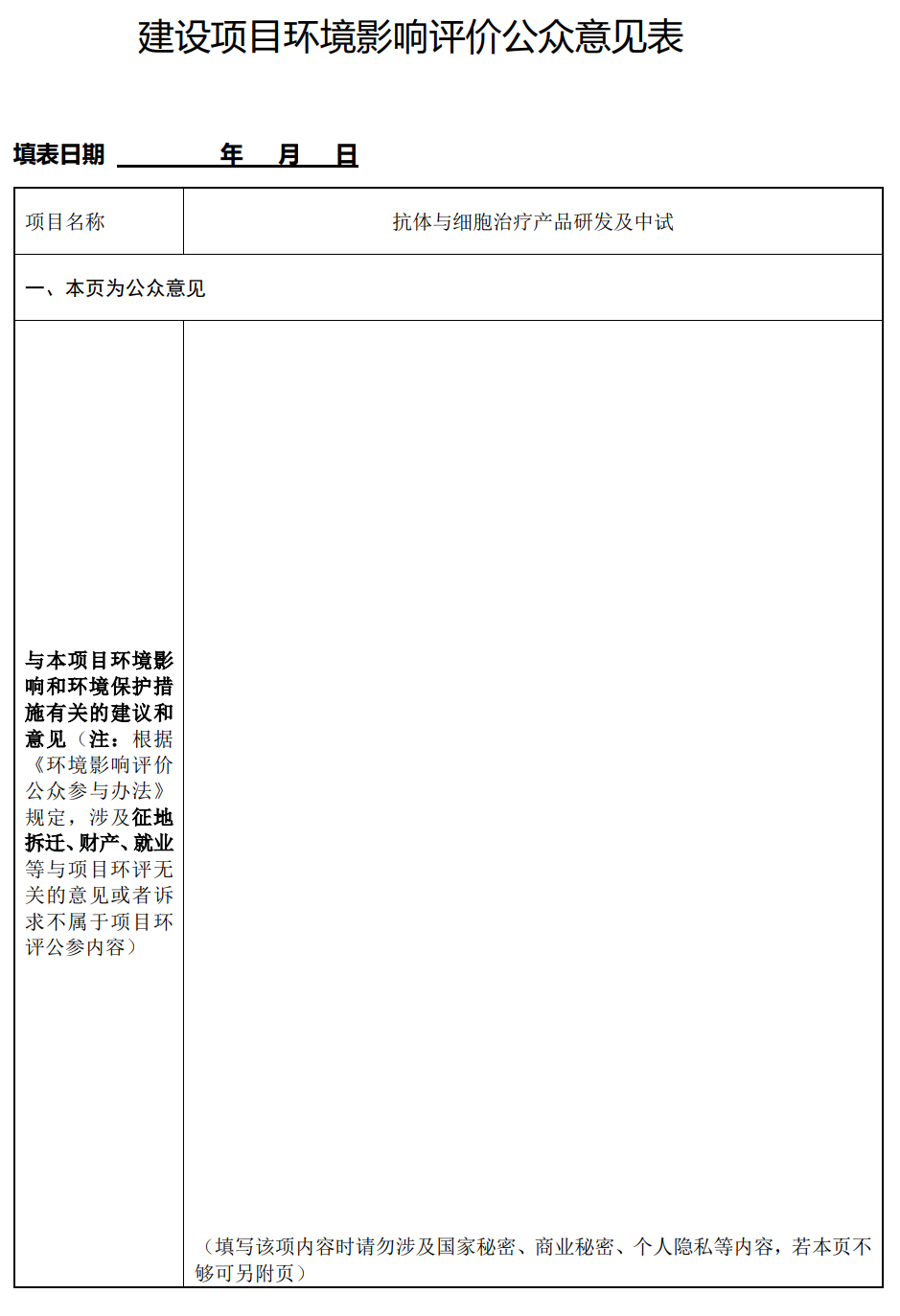 根據(jù)《環(huán)境影響評價公眾參與辦法》(生態(tài)環(huán)境部部令第4號)的要求,現(xiàn)將“南京藍盾生物科技有限公司抗體與細胞治療產(chǎn)品研發(fā)及中試”環(huán)境影響評價信息予以公示,以便廣大公眾在環(huán)境保護方面提出更多的意見和建議。