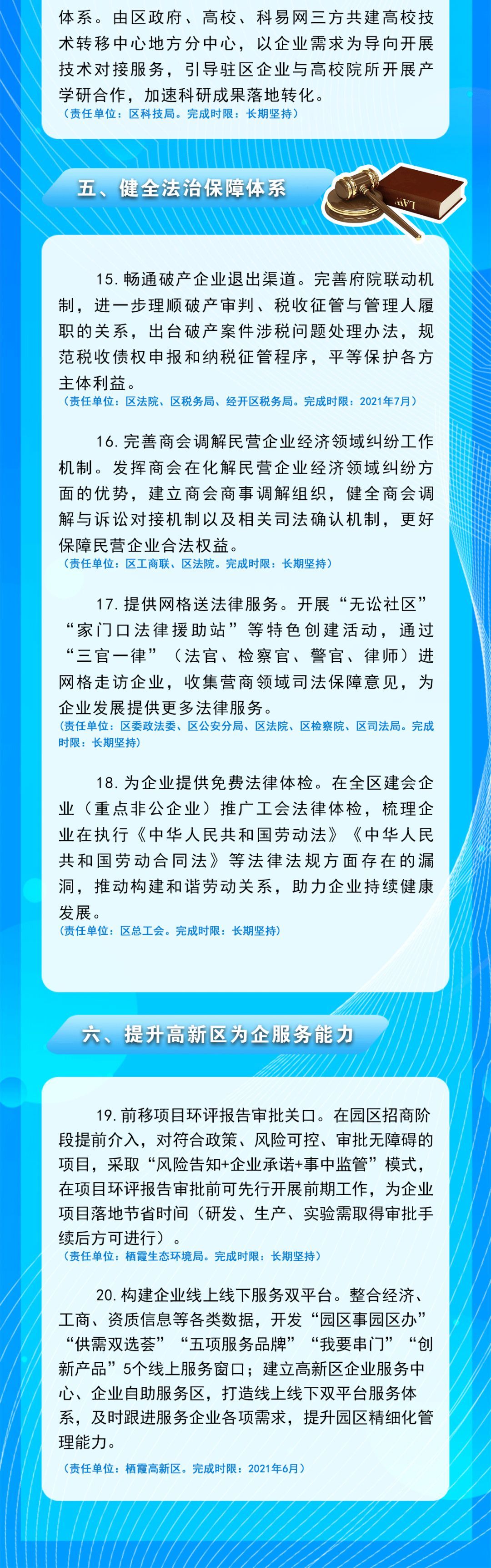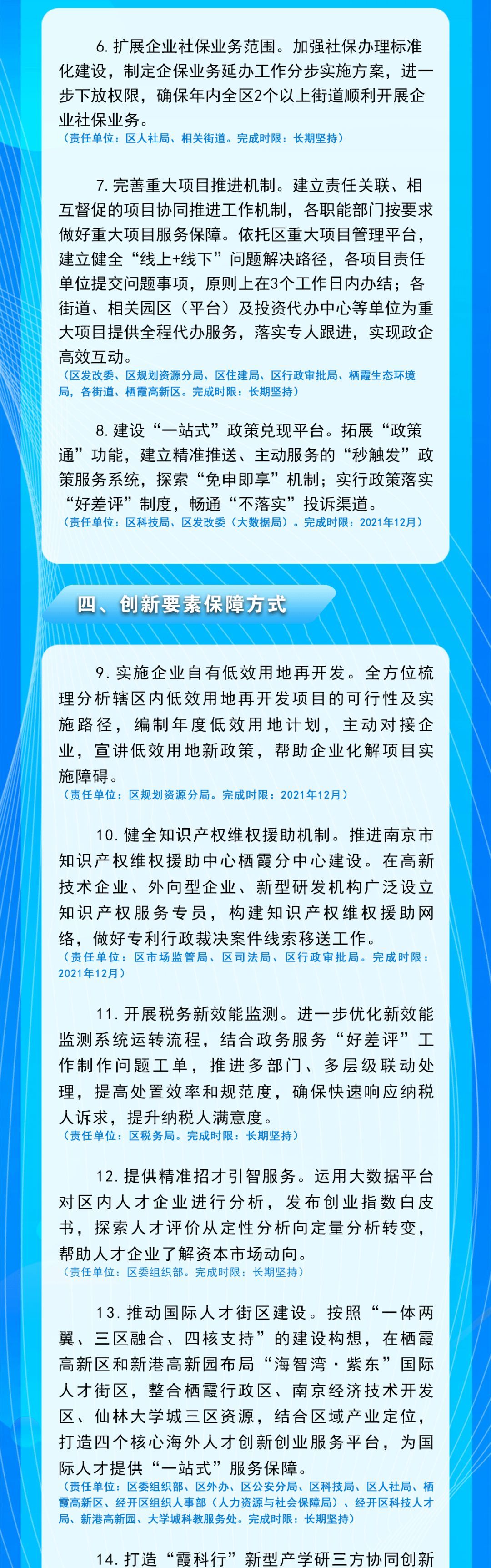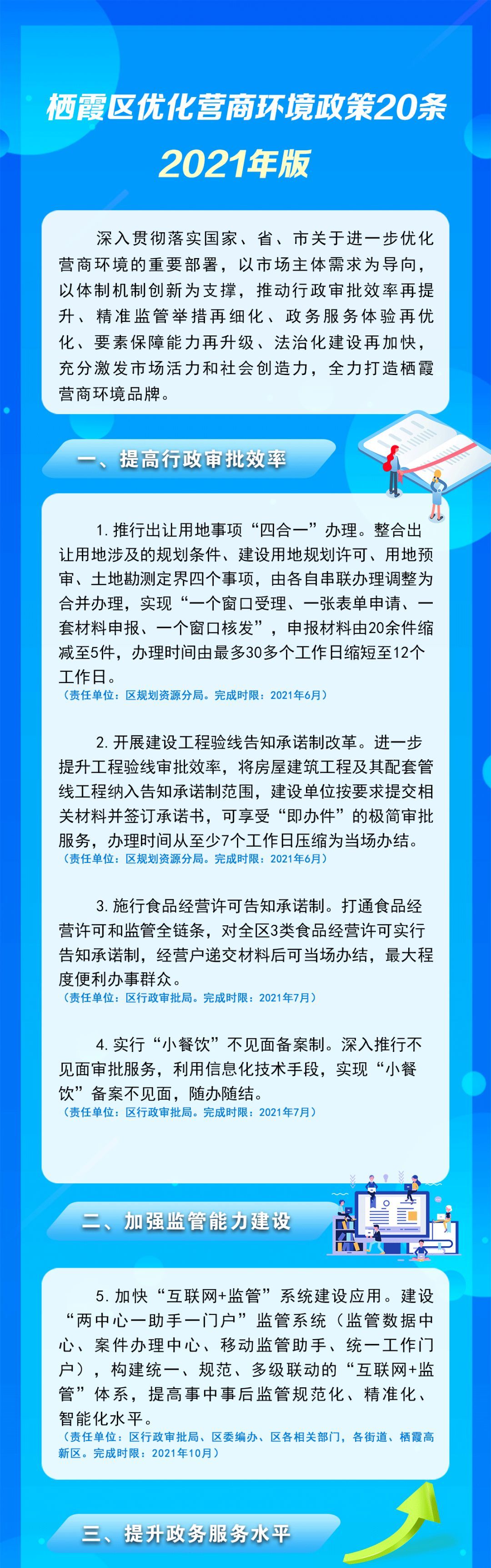 近日,棲霞區(qū)印發(fā)《棲霞區(qū)優(yōu)化營商環(huán)境政策20條(2021年版)》,在去年制定實(shí)施《棲霞區(qū)優(yōu)化營商環(huán)境政策20條》基礎(chǔ)上再次提升,從提高行政審批效率、加強(qiáng)監(jiān)管能力建設(shè)、健全法治保障體系等六個(gè)方面,為市場主體提供全方位優(yōu)質(zhì)服務(wù),充分激發(fā)市場活力和企業(yè)創(chuàng)造力,全力打造棲霞營商環(huán)境品牌。