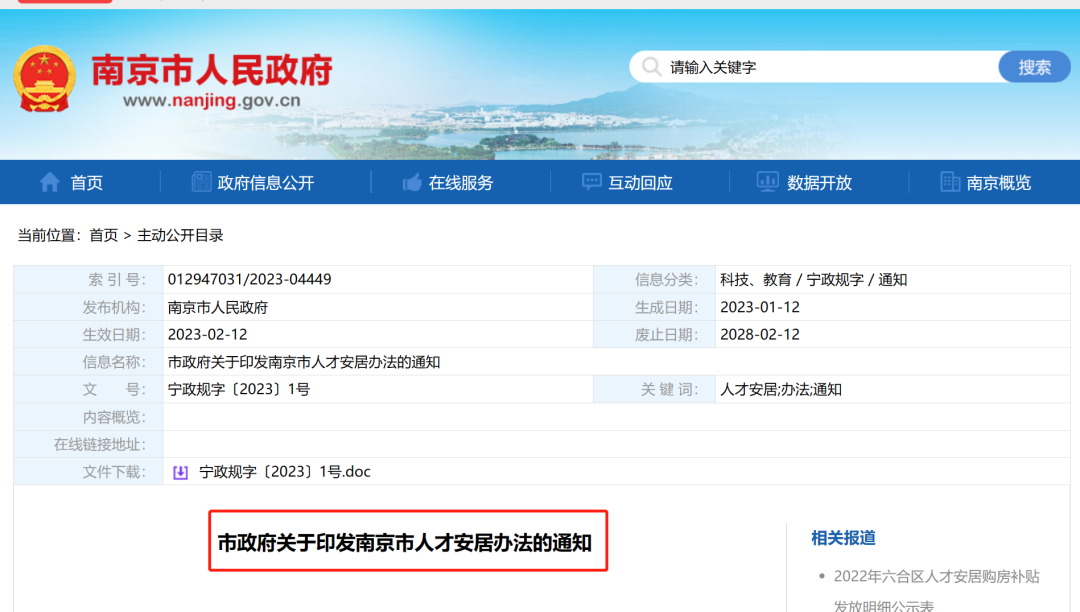 第三十九條本辦法自2023年2月12日起施行,有效期至2028年2月11日。南京市人民政府2017年4月24日發(fā)布的《南京市人才安居辦法(試行)》(寧政發(fā)〔2017〕99號)同時廢止。