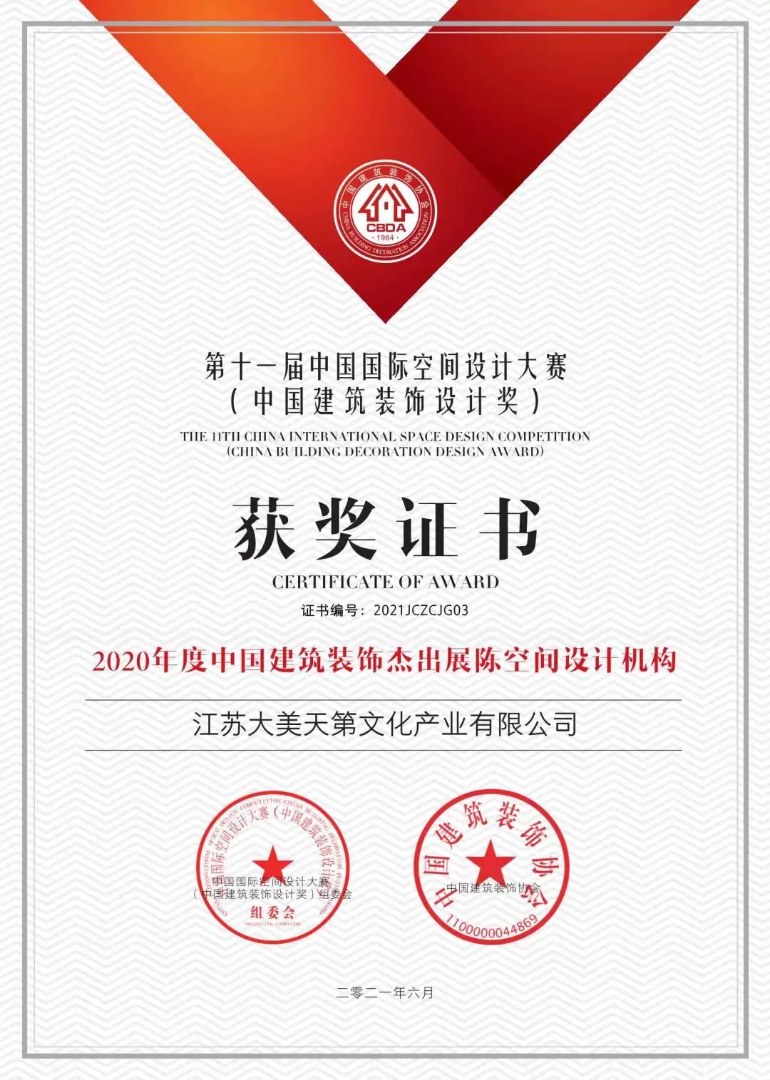 在大美天第十多載歷程中,深耕精筑文化領(lǐng)域,贏得了諸多國家、省、市多層級(jí)、全方位褒獎(jiǎng)。2021年收官在即,大美天第本年度依舊碩果累累,以極大的美譽(yù)度、信任度贏得了行業(yè)和客戶的認(rèn)可,品牌形象、品牌效應(yīng)全力彰顯。