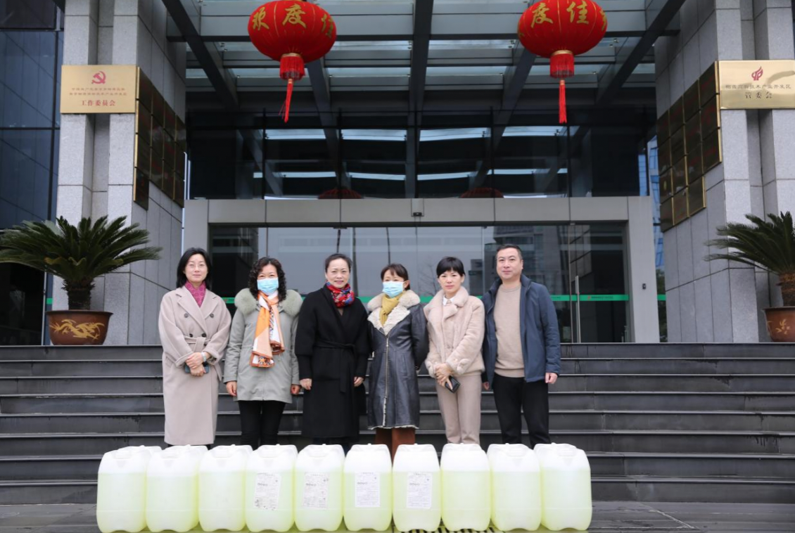 2月18日上午,華潤南京醫(yī)藥有限公司向棲霞高新區(qū)捐贈(zèng)150桶84消毒液,助力園區(qū)消毒工作。