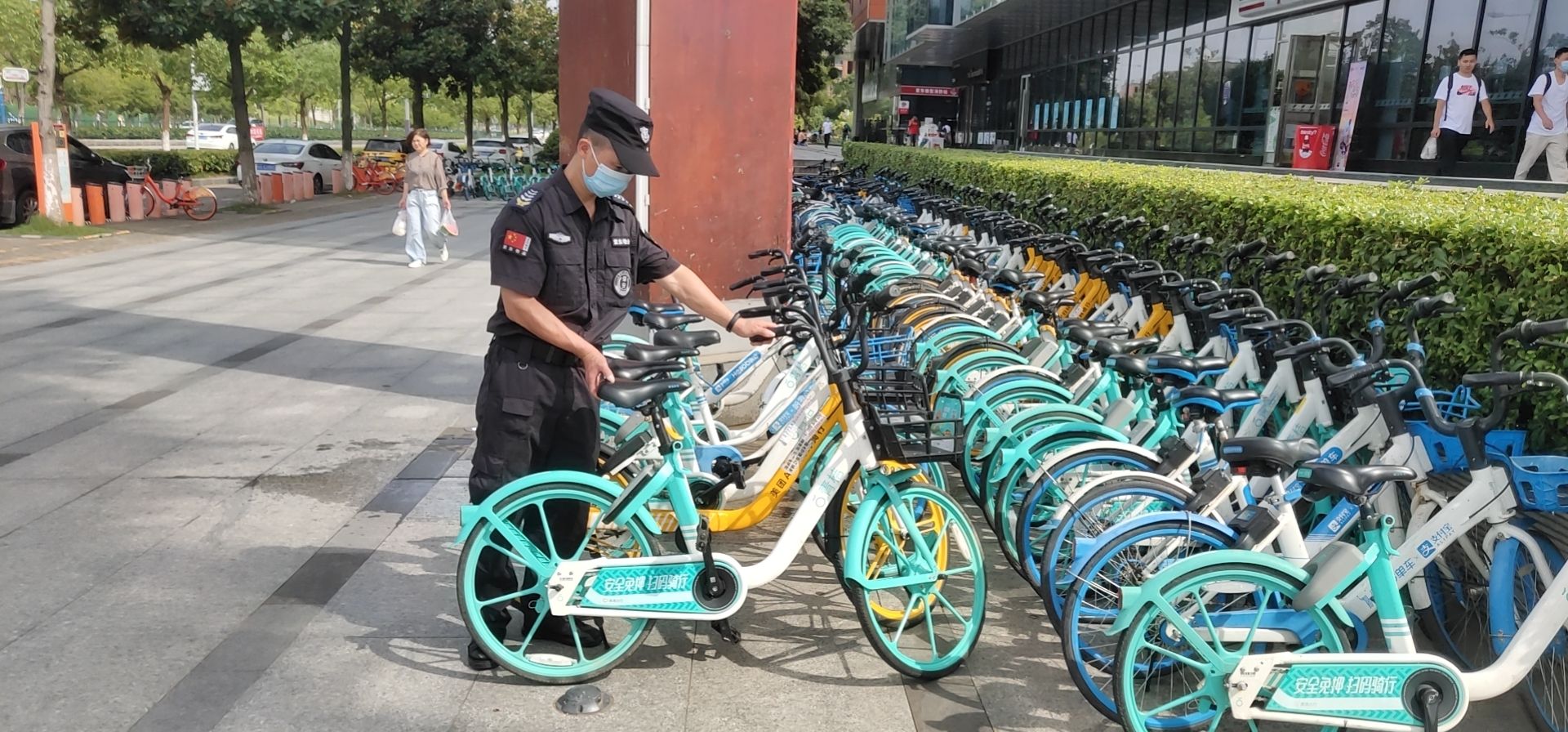將園區(qū)門口亂停亂放的共享單車清理至劃線區(qū)域框內(nèi)、勸阻攤販占道經(jīng)營,遮擋道路現(xiàn)象、保障進出機動車道、人行通道暢通無阻。