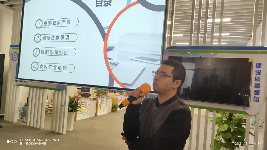 活動邀請了京洲聯(lián)信江蘇稅務(wù)師事務(wù)所有限公司資深財稅專家吳有平老師為大家授課。下午14:30,活動準(zhǔn)時開始,吳有平老師圍繞著本次活動的主題,從“2021年度重要政策解讀”、“年底結(jié)賬注意事項(xiàng)”、“新舊政策銜接”三個方面詳細(xì)展開,以案例分析的方式,形象生動地為企業(yè)帶來干貨滿滿的實(shí)務(wù)分享,并結(jié)合自身經(jīng)驗(yàn)和豐富的專業(yè)知識為企業(yè)的各種問題進(jìn)行現(xiàn)場解答,企業(yè)反響熱烈。