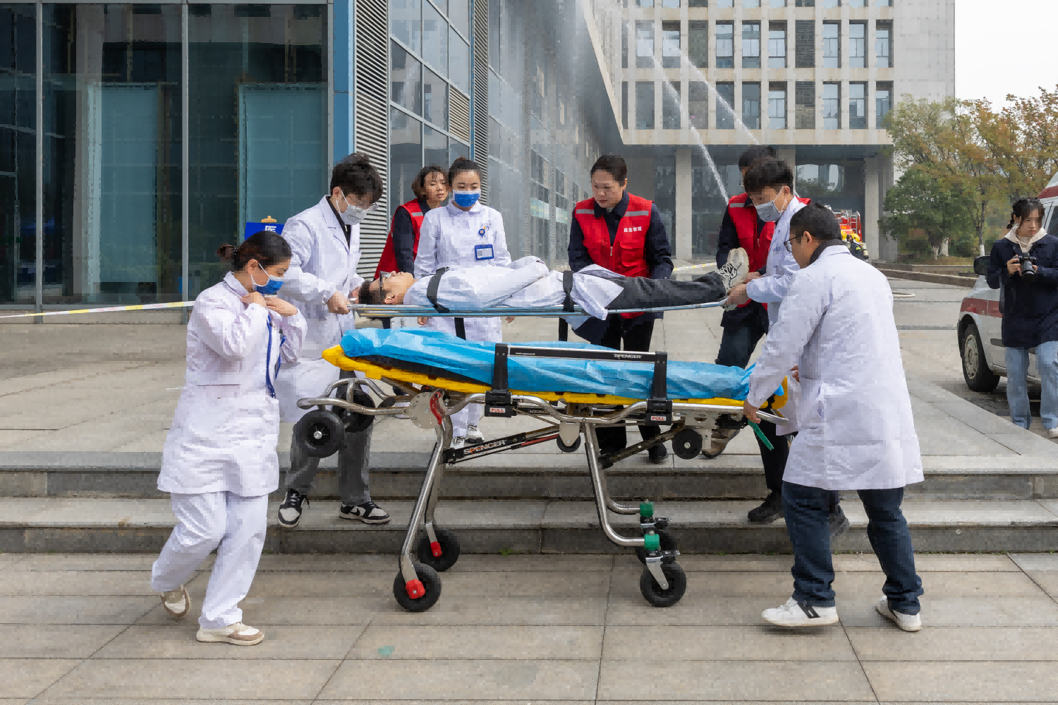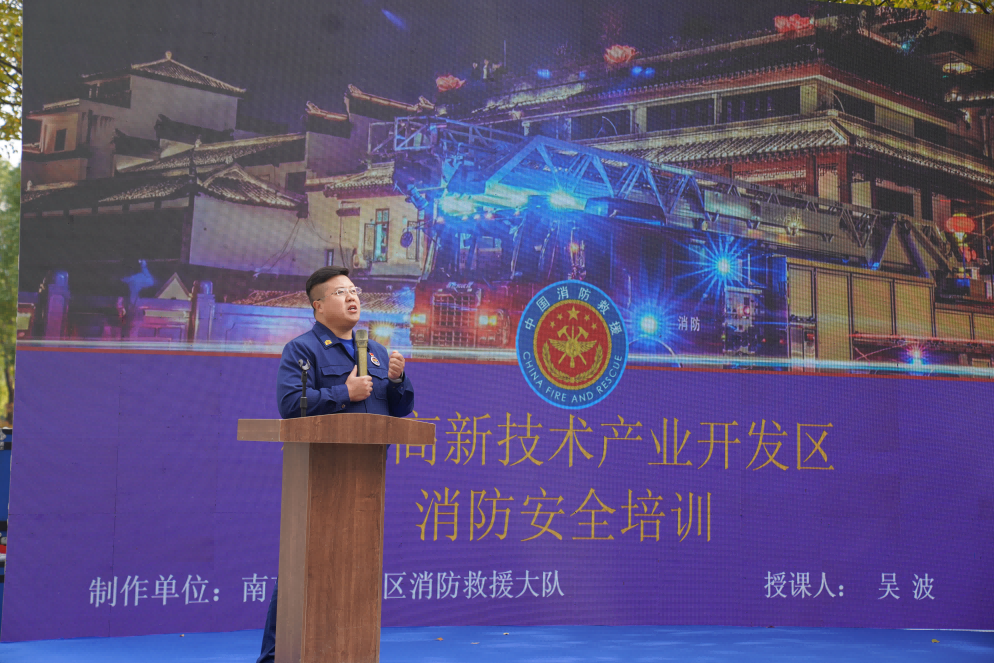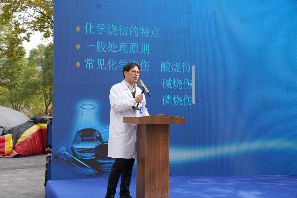 區(qū)消防救援大隊(duì)、棲霞社區(qū)衛(wèi)生服務(wù)中心就實(shí)驗(yàn)室?;坊馂?zāi)事故處置、人員傷后救援進(jìn)行現(xiàn)場(chǎng)授課。