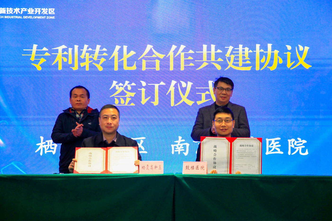 在活動(dòng)上,棲霞高新區(qū)管委會(huì)與南京鼓樓醫(yī)院簽署《專利轉(zhuǎn)化合作共建協(xié)議》,雙方就共建知識(shí)產(chǎn)權(quán)戰(zhàn)略發(fā)展支撐平臺(tái)、推進(jìn)成果轉(zhuǎn)化達(dá)成合作意向。