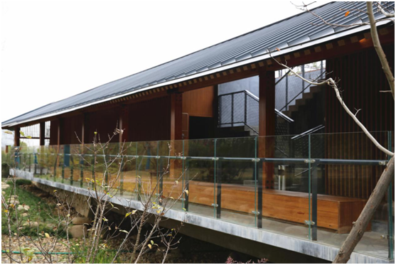 在公廁的功能設(shè)計(jì)上,園區(qū)還進(jìn)行了多種休閑功能的外延拓展,不滿(mǎn)足于單純的如廁需求,在廊橋游步道以東,還專(zhuān)門(mén)設(shè)計(jì)了一個(gè)階梯式的觀景空間,給人在漫步、健身之余提供一處休息、觀景之所,同時(shí)也是一個(gè)臨時(shí)性的小型研討、交流的場(chǎng)所。
