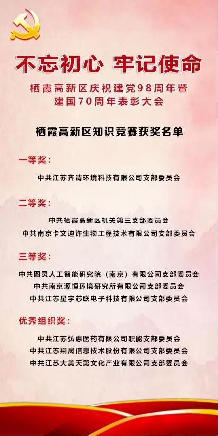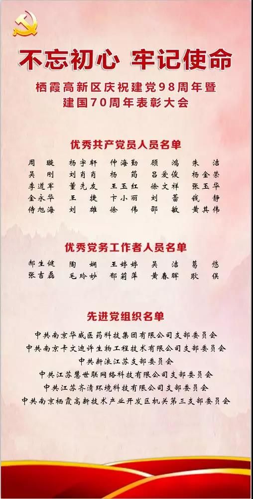 決定指出今年是中國共產(chǎn)黨成立98周年,是新中國成立 70 周年,也是決勝全面建成小康社會(huì)、實(shí)施“十三五”規(guī)劃的關(guān)鍵之年。為激勵(lì)各基層黨組織和廣大黨員堅(jiān)定信念,立足崗位,履職盡責(zé),奮發(fā)有為,高新區(qū)工委決定對(duì)周璇等25名優(yōu)秀共產(chǎn)黨員、郝生健等10名優(yōu)秀黨務(wù)工作者、中共南京華威醫(yī)藥科技集團(tuán)有限公司支部委員會(huì)等6個(gè)先進(jìn)黨組織以及“學(xué)習(xí)強(qiáng)國”知識(shí)競(jìng)賽獲獎(jiǎng)黨組織予以表彰。