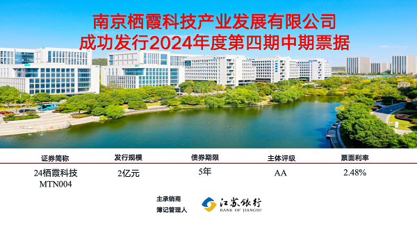 2024年7月18日,南京棲霞科技產(chǎn)業(yè)發(fā)展有限公司在銀行間債券市場成功發(fā)行中期票據(jù)2億元,期限為5年,票面利率2.48%。本次發(fā)行是信用發(fā)行,創(chuàng)有史以來南京市同資質(zhì)同期限同品種債券最低利率。