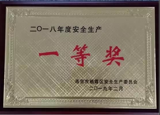 在2018年度全區(qū)安全生產目標管理考核評比中,棲霞高新技術產業(yè)開發(fā)區(qū)榮獲安全生產一等獎單位榮譽稱號。