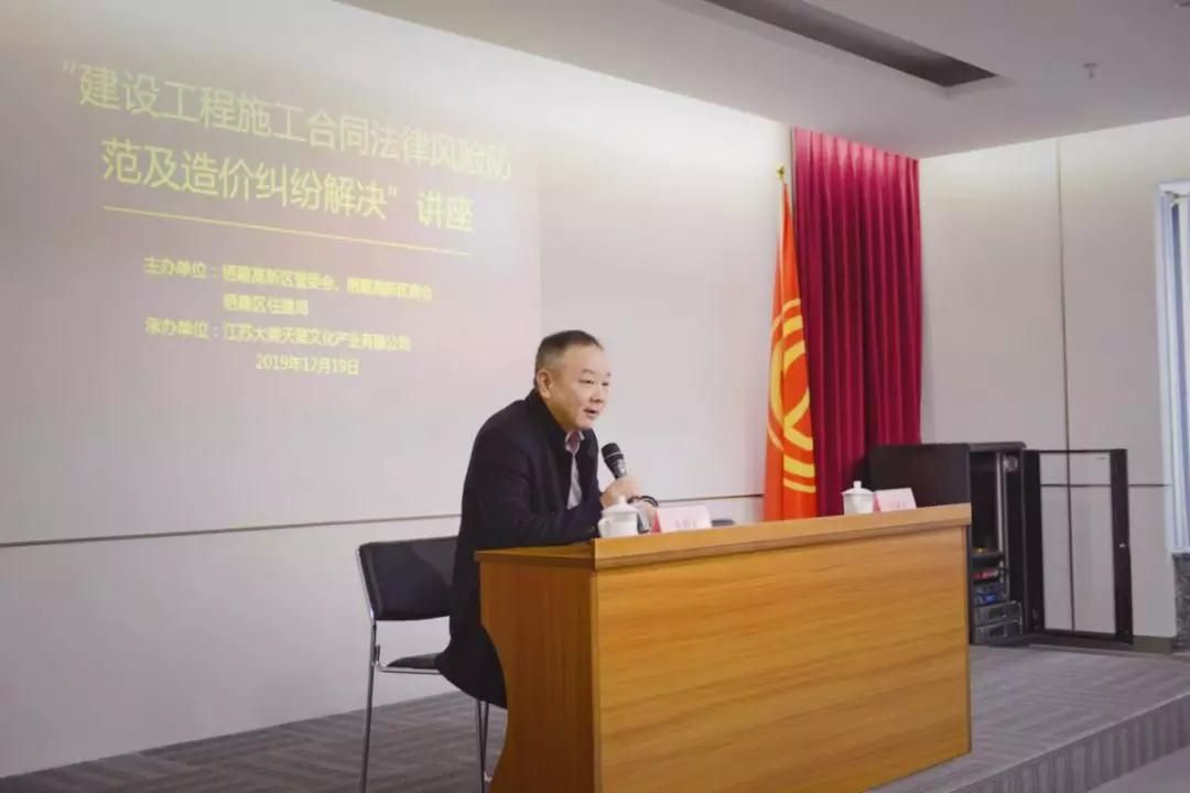 為了幫助企業(yè)做好建筑工程領(lǐng)域的合同管理及造價(jià)管控,棲霞高新技術(shù)產(chǎn)業(yè)開(kāi)發(fā)區(qū)管委會(huì)、棲霞高新技術(shù)產(chǎn)業(yè)開(kāi)發(fā)區(qū)商會(huì)、棲霞區(qū)住建局和江蘇大美天第文化產(chǎn)業(yè)有限公司于12月19日下午聯(lián)合舉辦了“建設(shè)工程施工合同法律風(fēng)險(xiǎn)防范及造價(jià)糾紛解決”講座。出席本次活動(dòng)的有棲霞高新區(qū)管委會(huì)主任吳丹、棲霞高新區(qū)企業(yè)服務(wù)處處長(zhǎng)蔣尚平、棲霞區(qū)住建局副局長(zhǎng)米強(qiáng)、法制科負(fù)責(zé)人方圓、江蘇大美天第文化產(chǎn)業(yè)有限公司負(fù)責(zé)人,受邀參加今天培訓(xùn)活動(dòng)的還有棲霞高新區(qū)相關(guān)企事業(yè)代表及大美天第部分工作人員,共50余人。