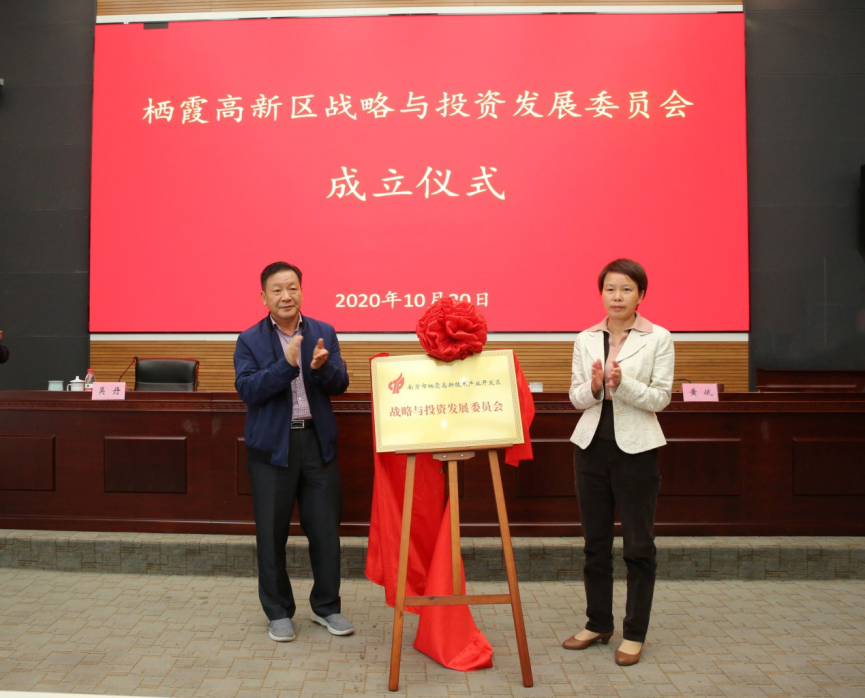 活動現(xiàn)場,胡主任與盧區(qū)長共同為棲霞高新區(qū)戰(zhàn)略與投資發(fā)展委員會揭牌,相關(guān)負(fù)責(zé)人介紹了委員會服務(wù)規(guī)劃與服務(wù)內(nèi)容。