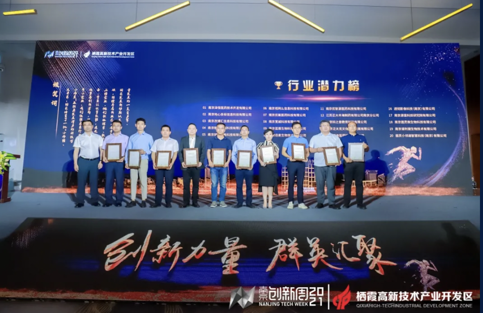 棲霞區(qū)人民政府副區(qū)長(zhǎng)盧靜為新醫(yī)藥與生命健康產(chǎn)業(yè)榜單獲獎(jiǎng)企業(yè)代表頒獎(jiǎng)。