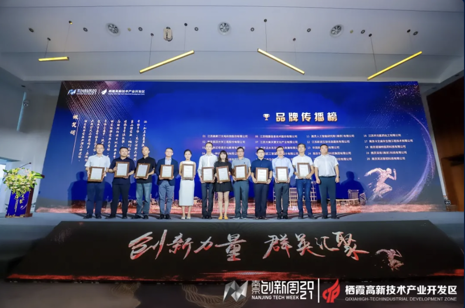 棲霞高新區(qū)管委會(huì)主任吳丹為品牌傳播榜單獲獎(jiǎng)企業(yè)代表頒獎(jiǎng)。