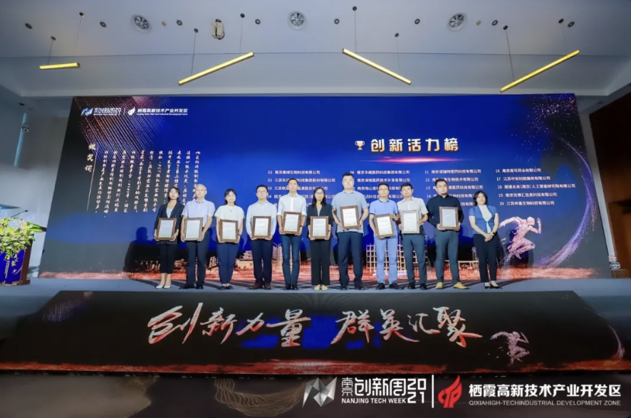 棲霞區(qū)人民政府副區(qū)長(zhǎng)王靖華為創(chuàng)新活力榜單獲獎(jiǎng)企業(yè)代表頒獎(jiǎng)。