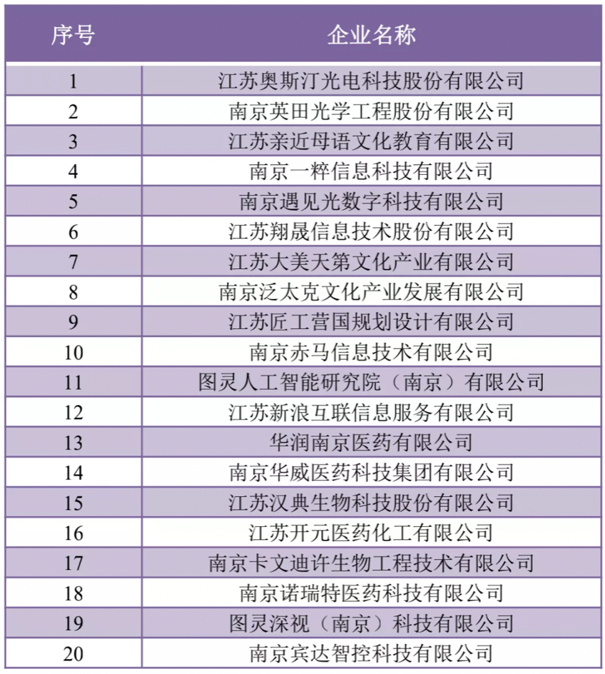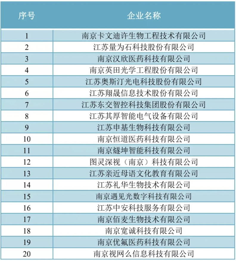 2020年,園區(qū)榮獲“南京市專(zhuān)利導(dǎo)航試驗(yàn)區(qū)”稱(chēng)號(hào),為鼓勵(lì)企業(yè)在發(fā)明專(zhuān)利授權(quán)、PCT授權(quán)及企業(yè)技術(shù)合同開(kāi)發(fā)等方面持續(xù)探索,遴選出20家上榜企業(yè)。