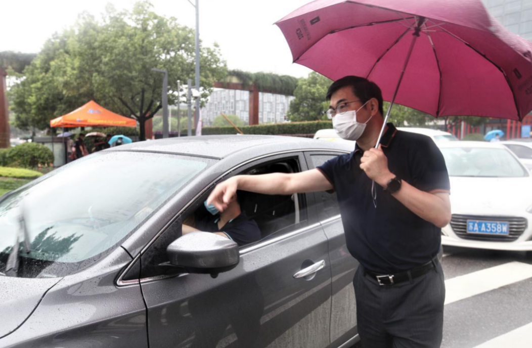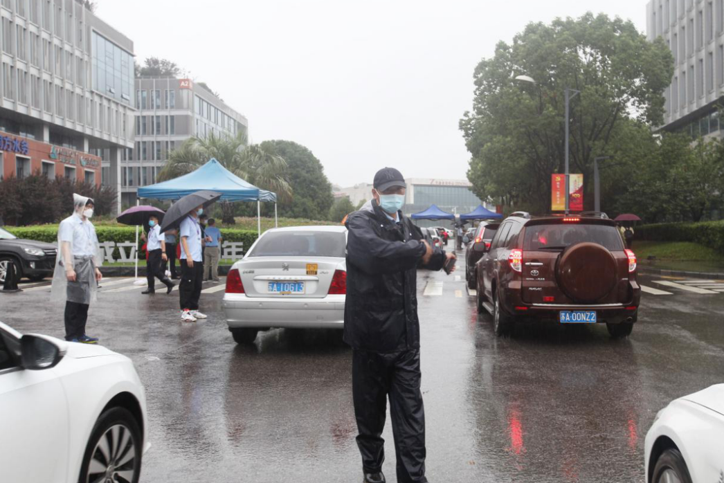 高新區(qū)工作人員引導(dǎo)車輛按序前進(jìn)