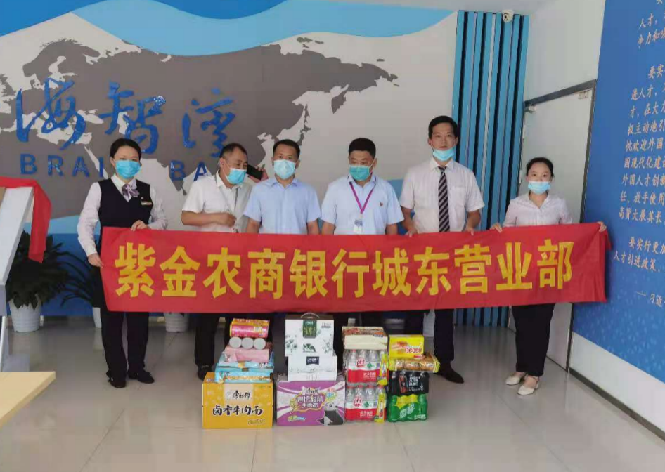 紫金農(nóng)商銀行城東營(yíng)業(yè)部為高新區(qū)捐贈(zèng)方便面、礦泉水等物資