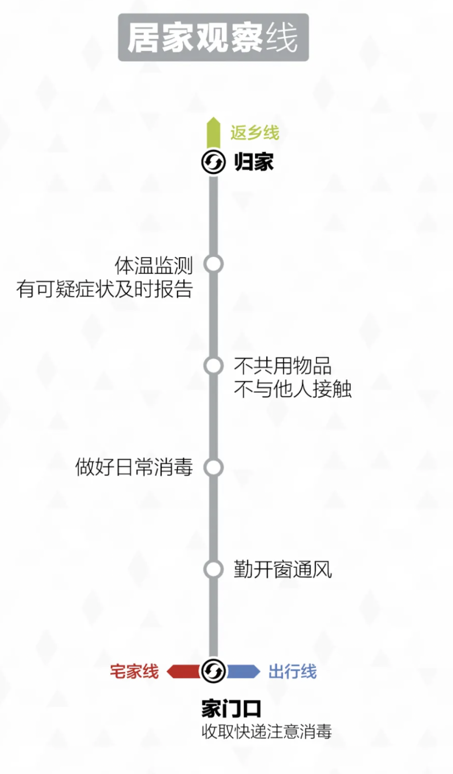 七、做好健康監(jiān)測。您或您的家人一旦出現(xiàn)發(fā)熱、干咳、乏力等癥狀,請立即到就近的發(fā)熱門診就醫(yī),并主動告知活動軌跡及接觸史。就醫(yī)途中全程佩戴口罩,避免乘坐公共交通工具。