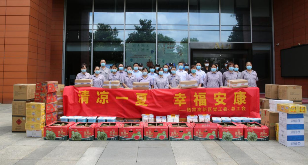 炎炎夏日送清涼,絲絲關(guān)愛(ài)入心田。8月4日,棲霞高新區(qū)黨工委、總工會(huì)在紫東物業(yè)開(kāi)展“清涼一夏,幸福安康”慰問(wèn)活動(dòng),棲霞高新區(qū)工委委員、管委會(huì)副主任涂建新,棲霞高新區(qū)工委委員、管委會(huì)副主任徐薇,棲霞高新區(qū)總工會(huì)副主席、綜合管理部部長(zhǎng)劉云松,棲霞高新區(qū)黨群工作部部長(zhǎng)黃小軍出席慰問(wèn)活動(dòng),向堅(jiān)守在高溫一線的紫東物業(yè)人送去“清涼”和關(guān)懷。