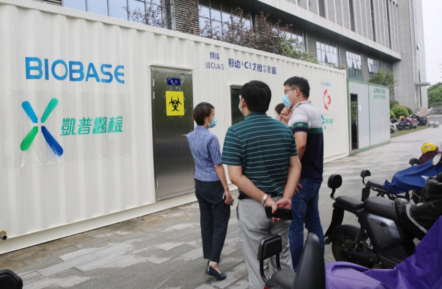 盧靜一行實(shí)地查看了南京凱普醫(yī)學(xué)檢驗(yàn)實(shí)驗(yàn)室的“可移動(dòng)PCR實(shí)驗(yàn)室”,詳細(xì)了解實(shí)驗(yàn)室的通排風(fēng)系統(tǒng)、設(shè)備間布局等建設(shè)情況。張亮亮介紹,實(shí)驗(yàn)室配置完善、分區(qū)科學(xué)、占地面積小、靈活度高,可在醫(yī)院、小區(qū)、鄉(xiāng)村、機(jī)場(chǎng)、廣場(chǎng)等地方快速獨(dú)立部署,滿足疫情期間臨時(shí)高強(qiáng)度的檢測(cè)需求,科學(xué)構(gòu)筑第一道安全防線。