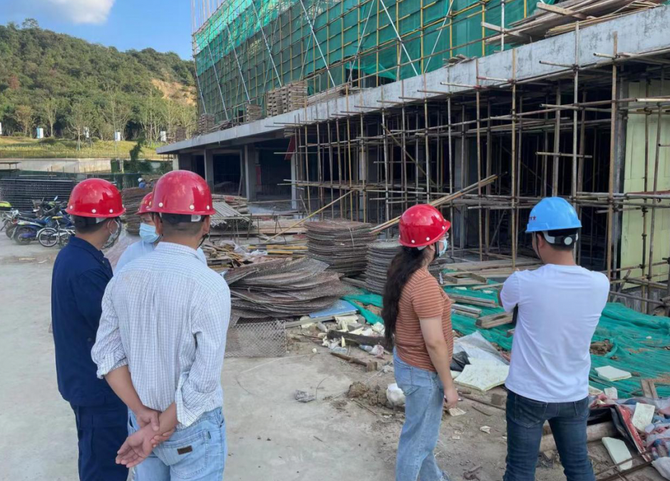 高新區(qū)安全工作人員與第三方安全專家檢查建筑工地