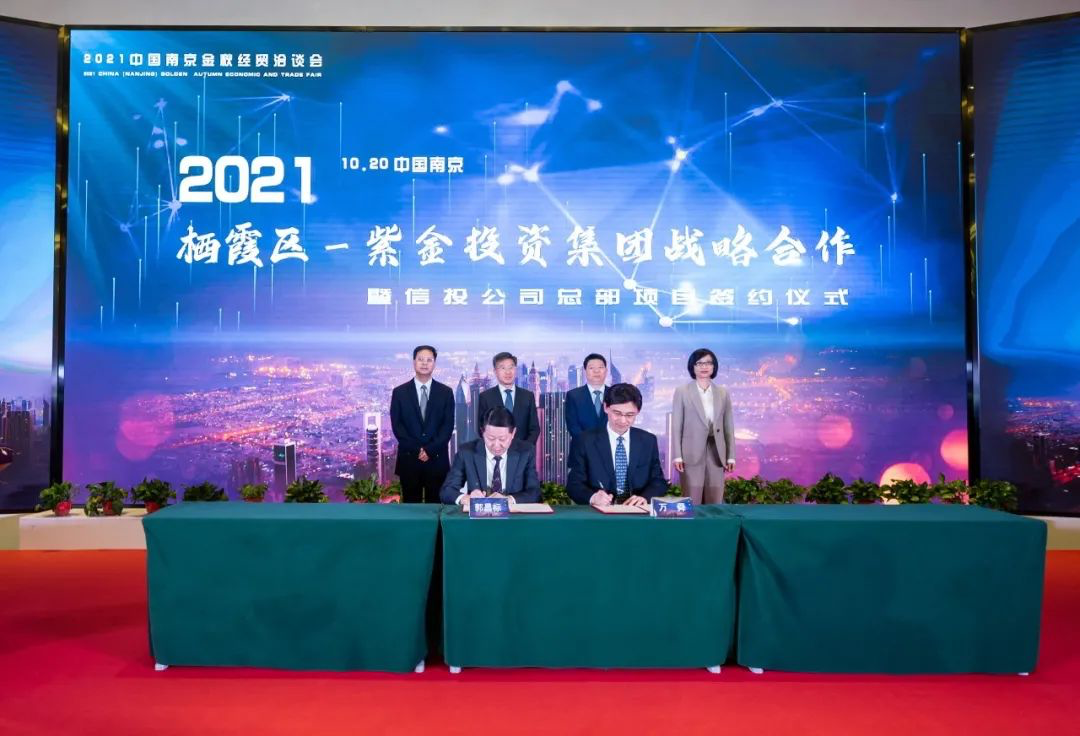隨后,棲霞區(qū)委常委、副區(qū)長郭昌標(biāo),與南京紫金投資集團(tuán)有限責(zé)任公司副總經(jīng)理萬舜共同簽訂“棲霞區(qū)人民政府與紫金投資集團(tuán)戰(zhàn)略合作暨信投公司總部項(xiàng)目合作協(xié)議”。