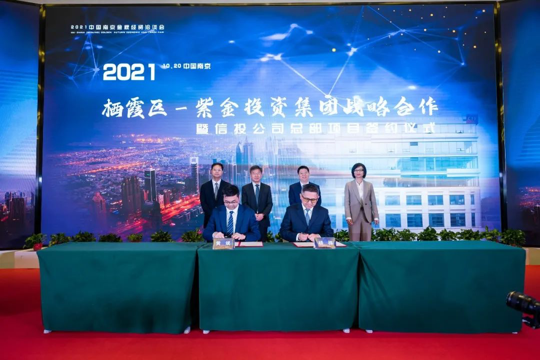 10月20日下午,“棲霞區(qū)-紫金投資集團(tuán)戰(zhàn)略合作暨信投公司總部項(xiàng)目”簽約儀式在紫東生態(tài)會議中心多功能廳舉行。