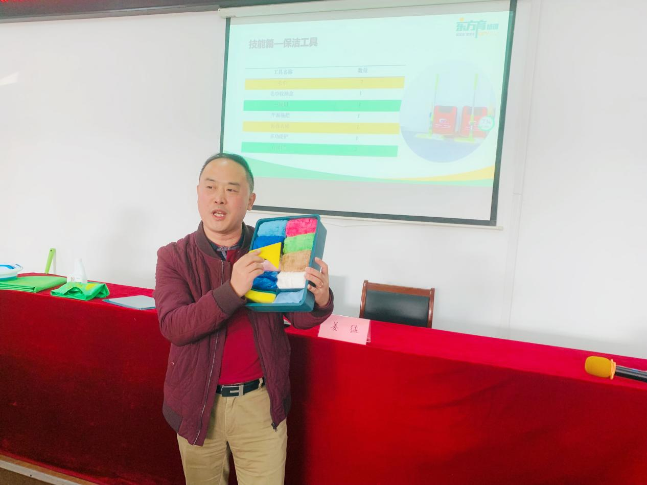 簽約儀式結(jié)束后,高新區(qū)巾幗文明崗為東江村婦女同志帶來了一場別出心裁又具有實用價值的家政服務(wù)科普講座。講座邀請了高新區(qū)企業(yè)——南京家人生活服務(wù)有限公司、東方育(南京)培訓(xùn)有限公司董事長兼創(chuàng)始人姜猛為大家授課。姜董圍繞“科學(xué)收納,綠色生活”的主題,從生活點滴小事入手,引導(dǎo)婦女同志用專業(yè)的保潔方法和巧妙的收納技巧幫家“瘦身”,指導(dǎo)大家如何營造一個井井有條、干凈明亮家居環(huán)境,提升家庭幸福指數(shù)。