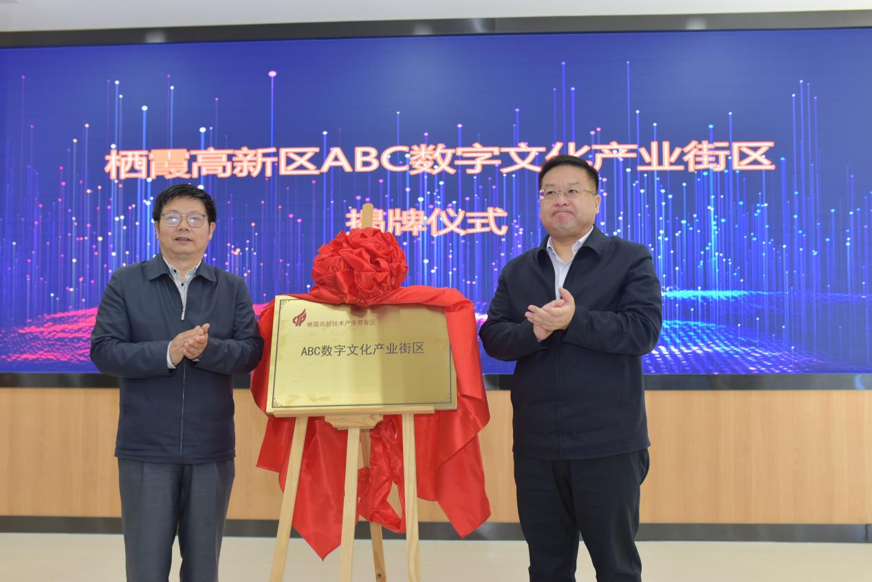 隨后,市委宣傳部常務(wù)副部長紀(jì)增龍,棲霞區(qū)委常委、宣傳部部長袁文峰共同為“ABC數(shù)字文化產(chǎn)業(yè)街區(qū)”揭牌。