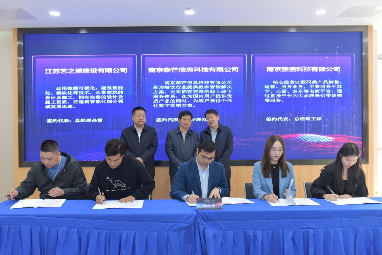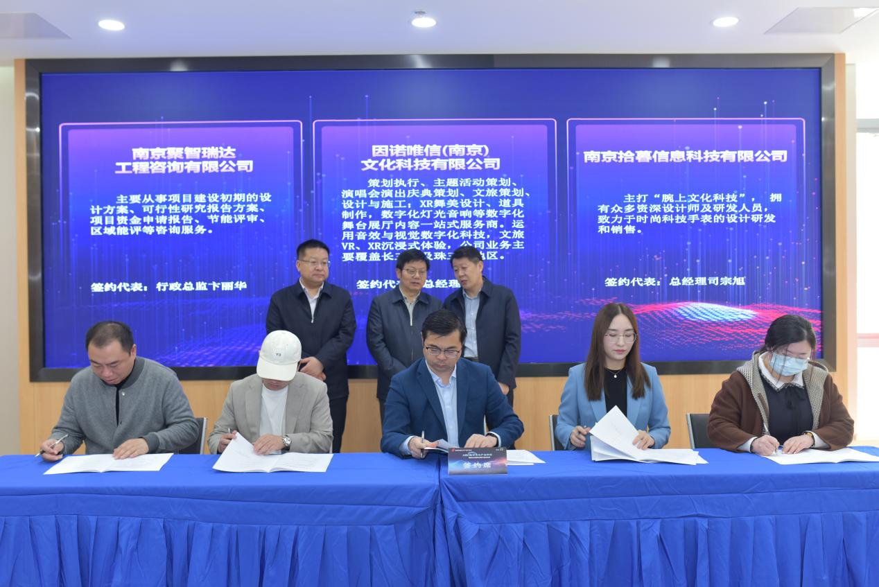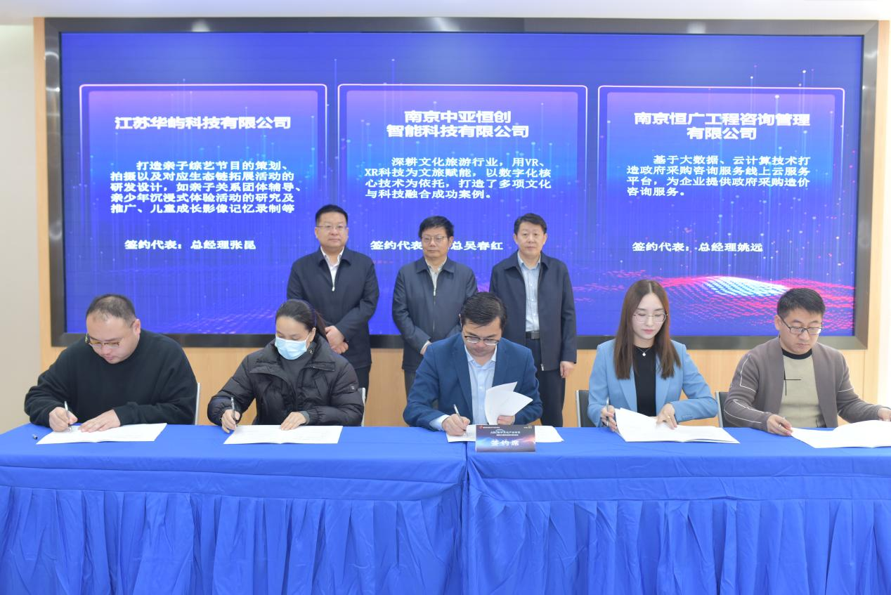 揭牌儀式后,棲霞高新區(qū)工委常務(wù)副書記黃斌、棲霞高新區(qū)ABC數(shù)字文化產(chǎn)業(yè)街區(qū)總經(jīng)理王友雙,與首批簽約的15家總投資4.06億元的優(yōu)質(zhì)文化企業(yè)代表,現(xiàn)場簽訂入駐協(xié)議。紀(jì)增龍、郭昌標(biāo)、袁文峰等領(lǐng)導(dǎo)共同見證。