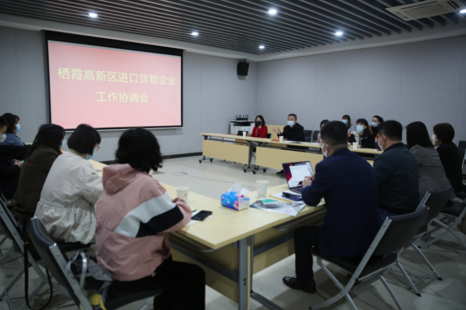 為減輕進口企業(yè)防疫負擔,降低企業(yè)成本,3月29日上午,棲霞高新區(qū)召開進口貨物企業(yè)工作協調會。棲霞高新區(qū)管委會副主任劉云松主持會議,第三方消殺企業(yè)南京喜悅科技股份有限公司總經理楊健,江蘇仲夏醫(yī)藥科技有限公司、南京恩泰醫(yī)藥科技有限公司等8家園區(qū)企業(yè)代表參加會議。