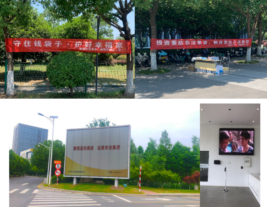 一、宣傳形式多樣化。本月,園區(qū)持續(xù)通過(guò)電子屏滾動(dòng)播放防范非法集資警示宣傳片、各園區(qū)重點(diǎn)區(qū)域懸掛防范非法集資橫幅等方式,充分發(fā)揮處非宣傳信息傳播的廣度,提高入園企業(yè)對(duì)非法集資的關(guān)注度和警惕性。