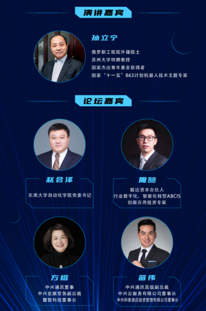 高峰論壇環(huán)節(jié)邀請俄羅斯工程院外籍院士、蘇州大學特聘教授、國家“十一五”863計劃機器人技術主題專家孫立寧教授做主題報告。東南大學自動化學院黨委書記趙會澤,毅達資本合伙人、行業(yè)數(shù)字化、智能化轉型ABCIS創(chuàng)新應用投資專家周喆,中興通訊董事、中興發(fā)展常務副總裁、霞智科技董事長方榕,中興通訊高級副總裁、中興云服務有限公司董事長、中興和泰酒店投資管理有限公司董事長苗偉將參與本次圓桌論壇,與人工智能機器人領域的相關專家人才一起,交流、分享、解密在萬物互聯(lián)時代背景下人工智能的方向與未來。