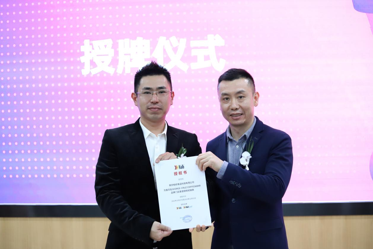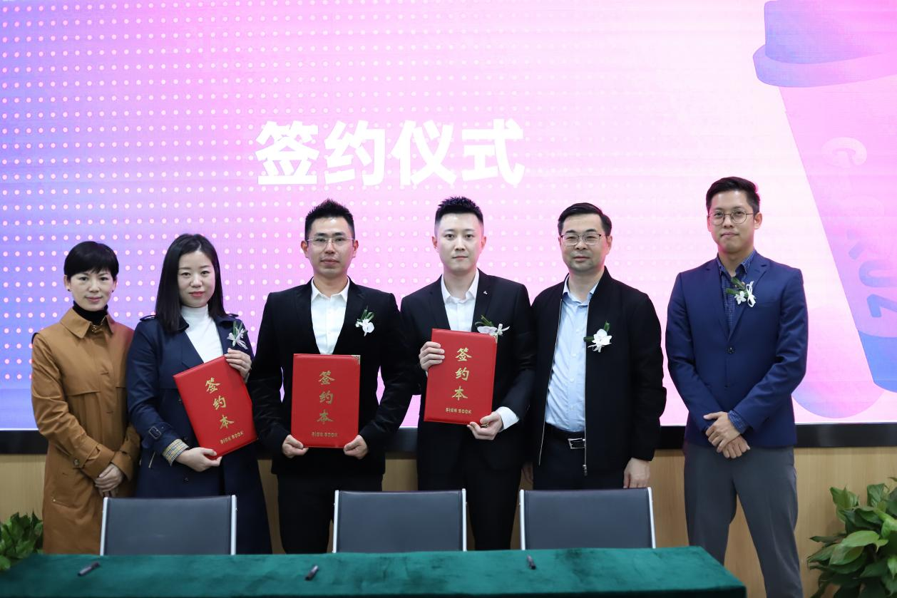 蘇州實(shí)桂沅食品有限公司總經(jīng)理劉勝玉、昆山吉有家便利連鎖有限公司總經(jīng)理劉亞偉與柏紋咖啡創(chuàng)始人陳宥熹簽訂供應(yīng)協(xié)議。