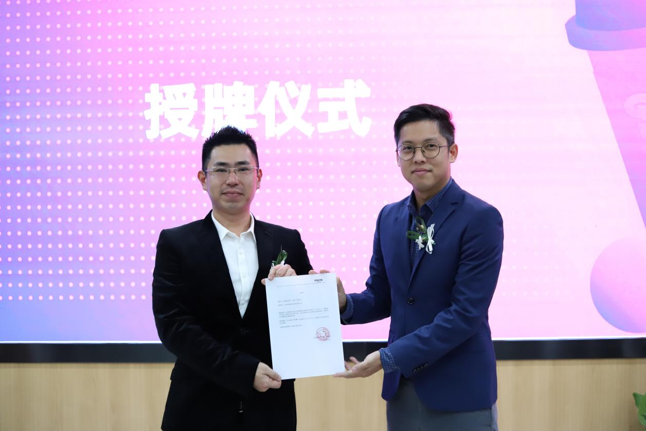 COSTA市場(chǎng)部總經(jīng)理張罡、KOLB華東區(qū)域總裁蔣大偉為柏紋總部授牌。