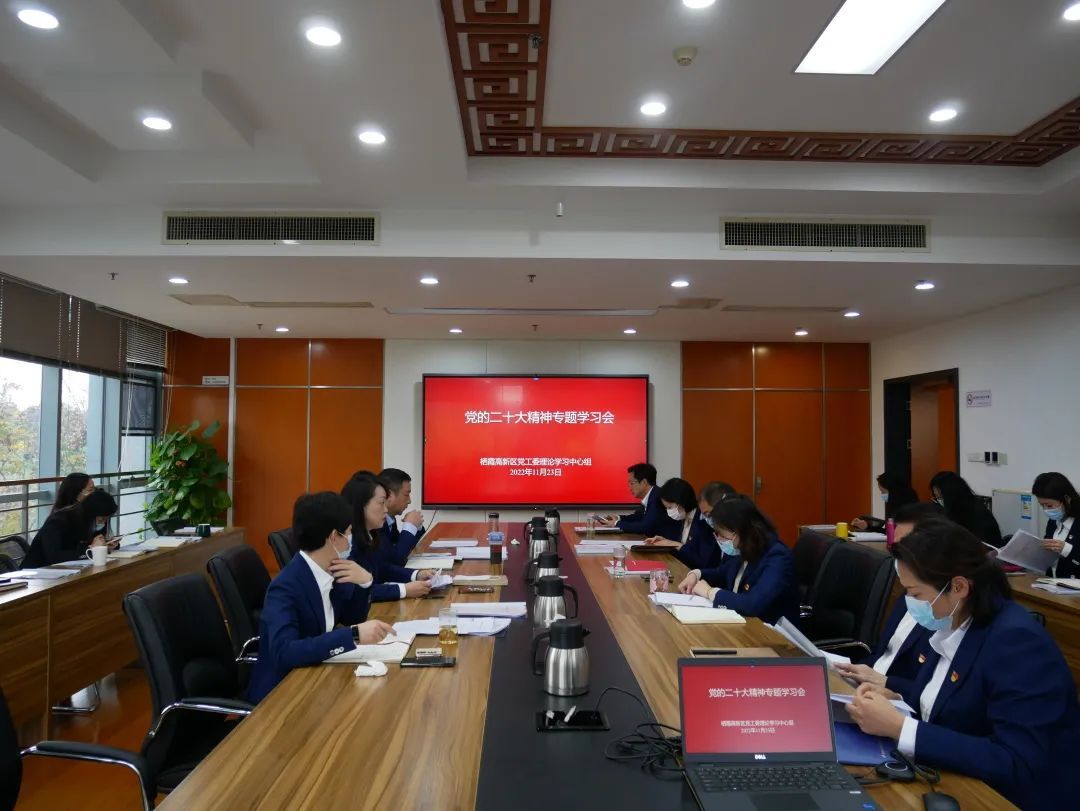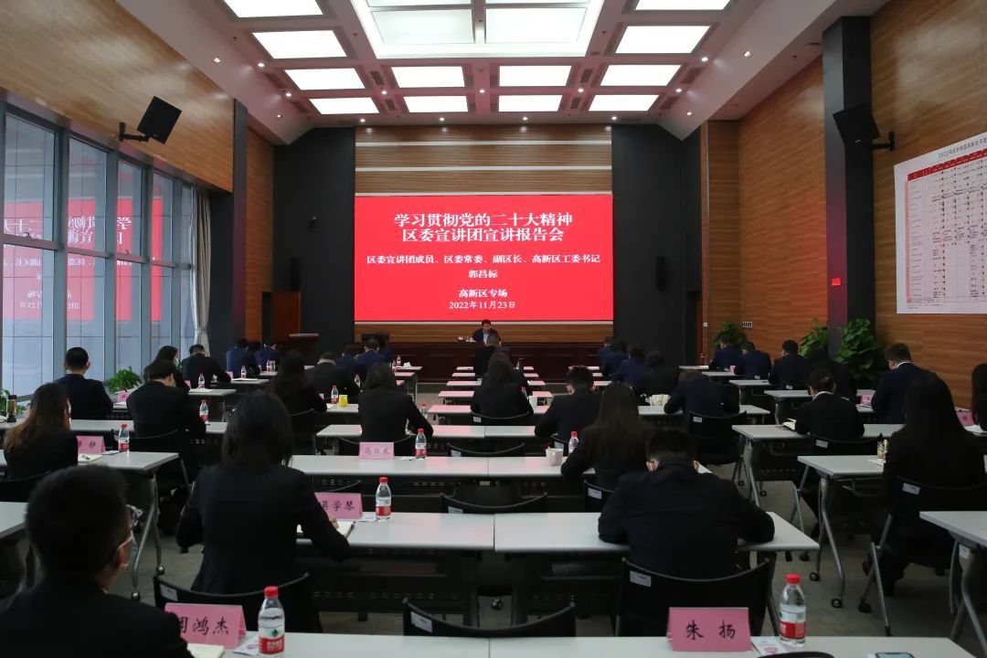11月23日,棲霞高新區(qū)召開學(xué)習(xí)貫徹黨的二十大精神宣講報告會,區(qū)委宣講團(tuán)成員、區(qū)委常委、副區(qū)長、高新區(qū)黨工委書記郭昌標(biāo)作專題宣講,高新區(qū)班子領(lǐng)導(dǎo)、各部門科長以上干部、各子公司黨政負(fù)責(zé)人參加,高新區(qū)黨工委常務(wù)副書記楊靜主持會議。