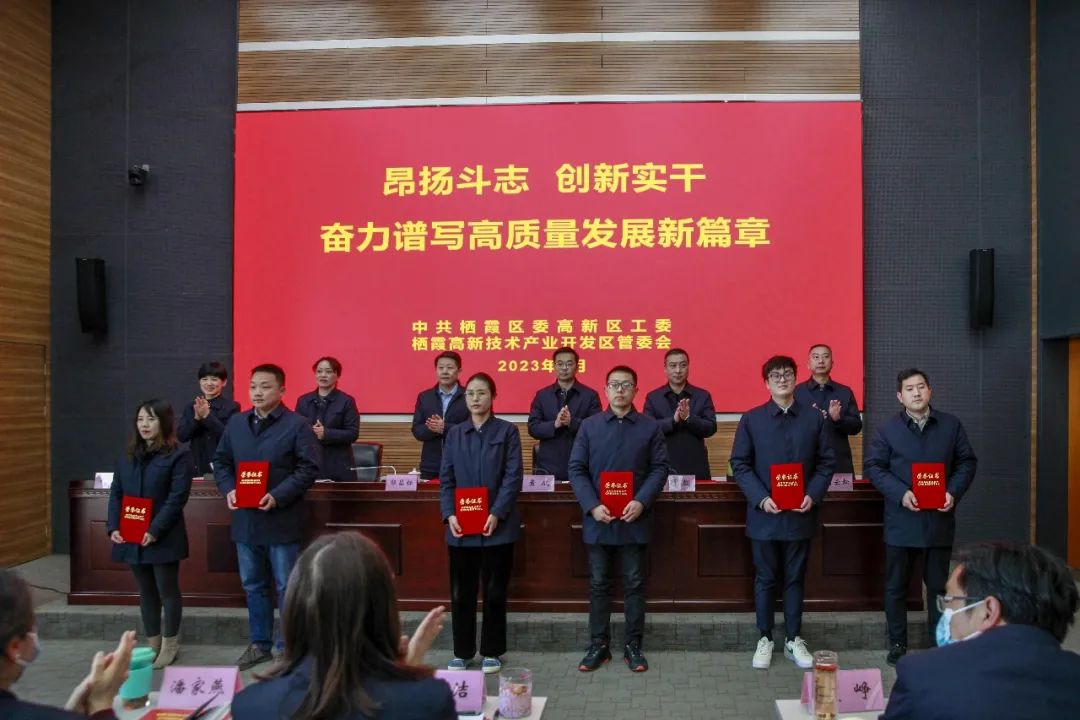 虎振雄風留浩氣,玉兔迎春啟新程。1月31日,棲霞高新區(qū)召開2023年全體員工大會。會議認真?zhèn)鬟_南京市委市政府“推動高質(zhì)量發(fā)展 爭當示范引領”動員會及棲霞區(qū)“三區(qū)深化作風建設推動高質(zhì)量發(fā)展走在前列”動員會會議精神,號召全體員工以更加昂揚的奮斗姿態(tài)和更加飽滿的工作熱情,擔當新作為,創(chuàng)造新業(yè)績,全力推動園區(qū)經(jīng)濟發(fā)展再上新臺階。棲霞區(qū)委常委、副區(qū)長、高新區(qū)黨工委書記郭昌標,管委會主任黃斌,常務副書記楊靜,紀工委書記顧戟,副主任徐薇、劉云松,高新區(qū)各部門、子公司主要負責人及全體員工參加會議。