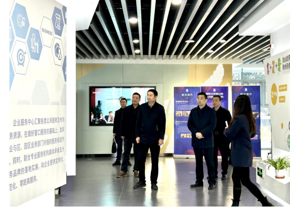 考察學(xué)習(xí)團(tuán)隊參觀了園區(qū)企業(yè)服務(wù)中心,詳細(xì)了解園區(qū)企業(yè)服務(wù)工作開展情況。