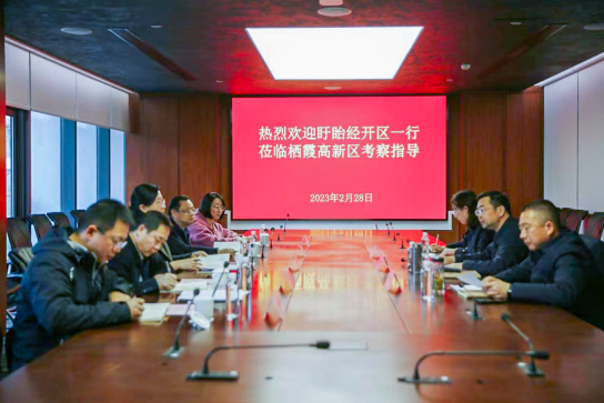 2月28日,江蘇盱眙縣委常委、盱眙經(jīng)開區(qū)黨工委書記李闊,盱眙經(jīng)開區(qū)管委會副主任劉善江一行調(diào)研南京棲霞高新區(qū)。棲霞高新區(qū)管委會主任黃斌、管委會副主任劉云松、經(jīng)濟(jì)發(fā)展部部長朱潔陪同調(diào)研。