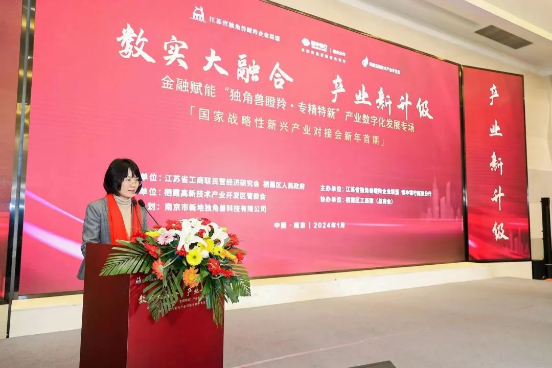 1月19日,由江蘇省工商聯(lián)民營經(jīng)濟研究會、棲霞區(qū)人民政府指導(dǎo),江蘇省獨角獸瞪羚企業(yè)聯(lián)盟、恒豐銀行南京分行主辦,棲霞高新技術(shù)產(chǎn)業(yè)開發(fā)區(qū)管委會承辦的“數(shù)實大融合 產(chǎn)業(yè)新升級——金融賦能‘獨角獸瞪羚·專精特新’產(chǎn)業(yè)數(shù)字化發(fā)展專場暨國家戰(zhàn)略性新興產(chǎn)業(yè)對接會新年首期活動”在紫東生態(tài)會議中心成功舉辦。