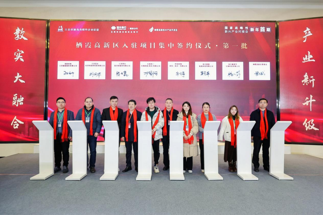 棲霞高新區(qū)管委會主任黃斌與13家新引進優(yōu)質(zhì)企業(yè)集中簽約儀式