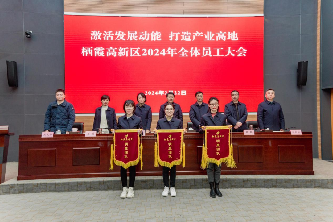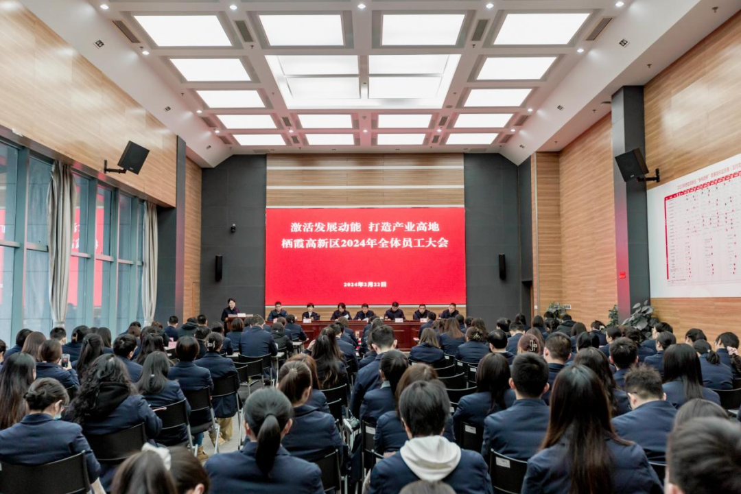 吹響號角勇爭先,奮力實干開新局。2月22日,棲霞高新區(qū)召開2024年全體員工大會,回顧2023年工作成效,部署全年工作,總結(jié)經(jīng)驗,表揚先進,激勵干部職工對標(biāo)競進、比學(xué)趕超。區(qū)委常委、區(qū)政府常務(wù)副區(qū)長,棲霞高新區(qū)黨工委書記郭昌標(biāo),高新區(qū)部長以上領(lǐng)導(dǎo)、各部門全體員工、子公司班子成員參加會議。黨工委常務(wù)副書記楊靜主持會議。
